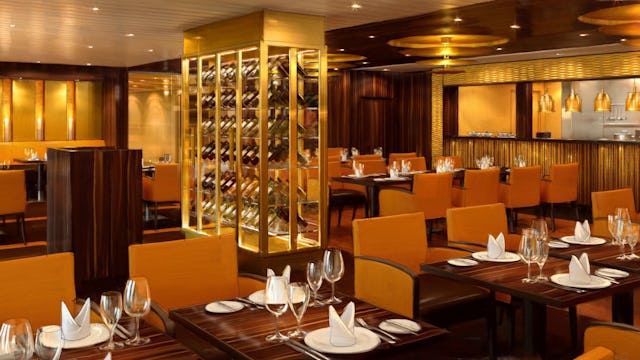 Enjoy a variety of dining options and bars onboard including premium cuts of beef at Steakhouse and try a Caribbean rum-based concoction at Redfrog Rum Bar.