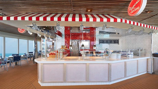 Pick your toppings at any time day or night and snap a selfie. This will allow the delivery folks to find you wherever you are on the ship and deliver your fresh pizza directly to you for just $5 per pie and the pizzas are always free.