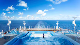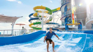 A guest on FlowRider onboard a Royal Caribbean ship