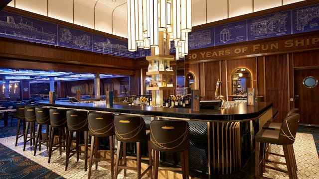 This space pays tribute to history by celebrating 50 years of Carnival ships. The décor is classic and will transport you decades back through time. Join the celebrations and raise a glass with a friend as you listen to the live performances.
