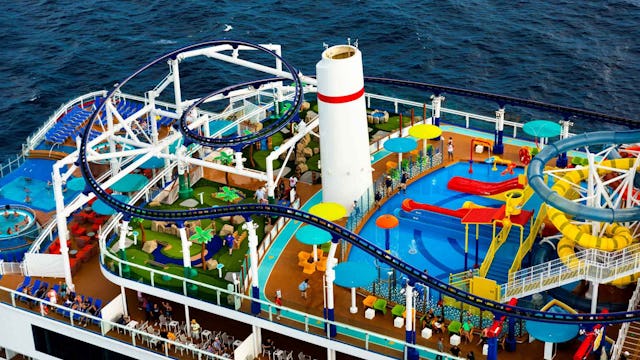 There is plenty of fun for all to have at this onboard waterpark. Spiral down hundreds of feet in the Twister Waterslide, get your adrenaline pumping with Speedway Splash or get soaked at PowerDrencher.