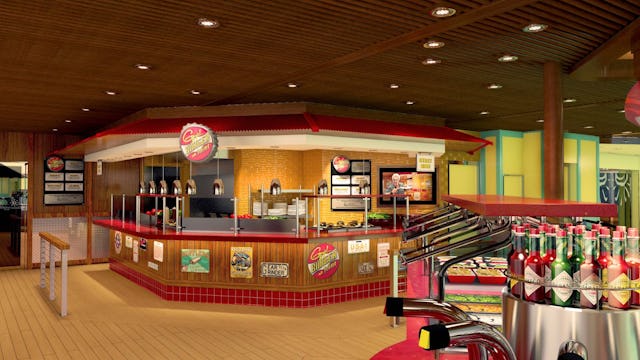 A poolside bar which features Caribbean rum-based concoctions as well as plenty of Carnival’s signature private-label draft beer. It is a great place to have a drink during a day full of activities.