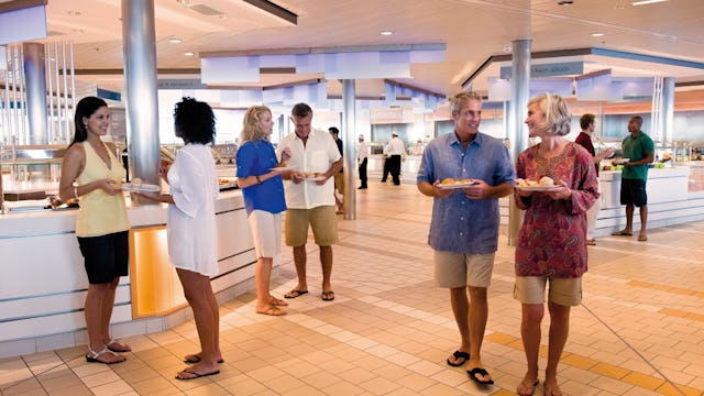 Onboard Celebrity Solstice you can enjoy a selection of foods from around the world including a fresh bakery at Oceanview Café. At night visit Martini Bar & Crush where the bartenders put on a show making your drink of choice.