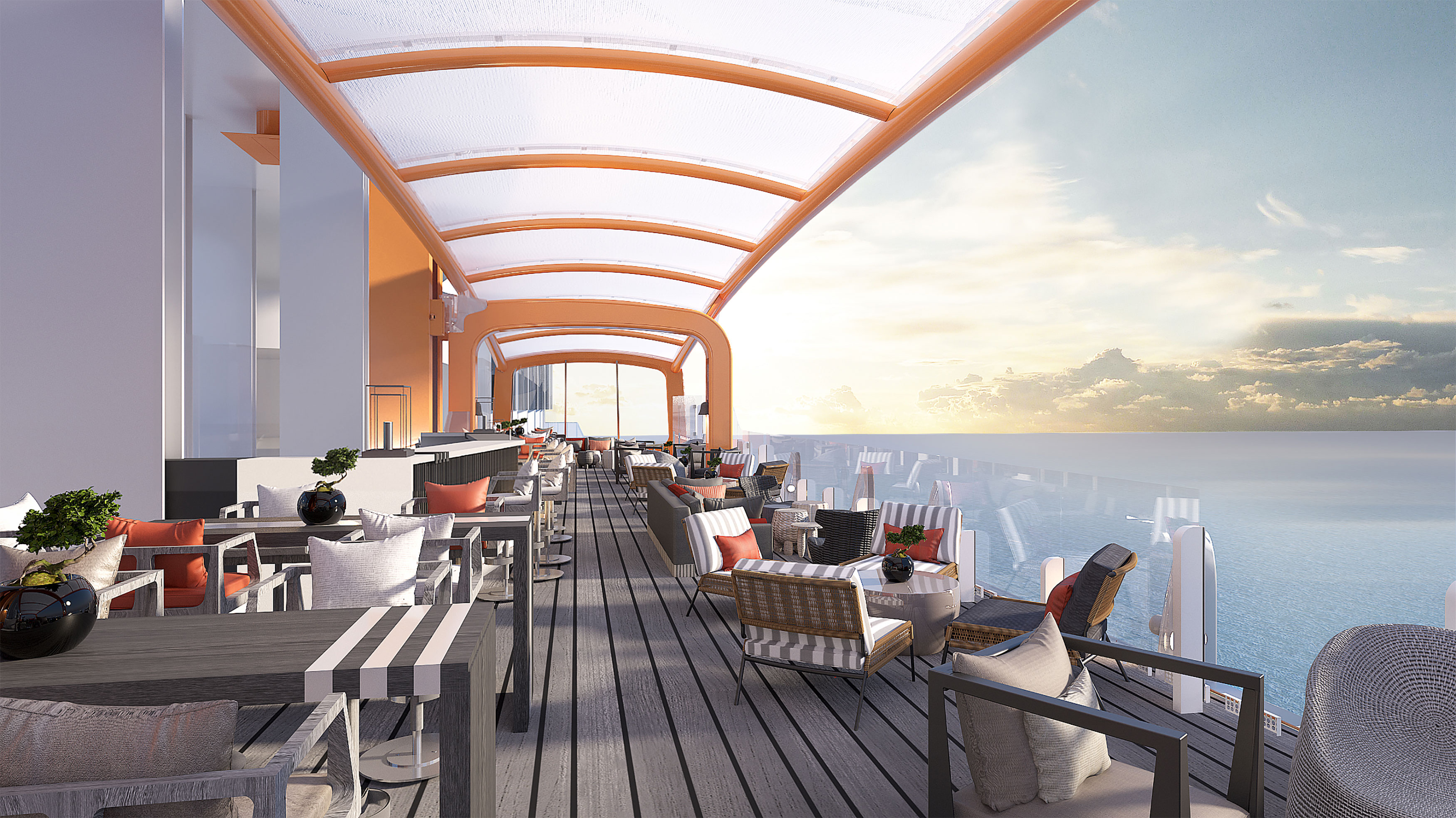 Dine, drink, and soar above the sea on the Magic Carpet, the world’s first cantilevered, floating platform