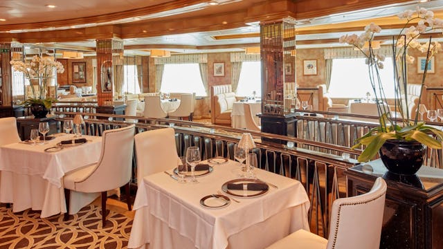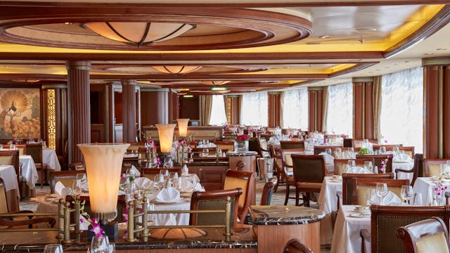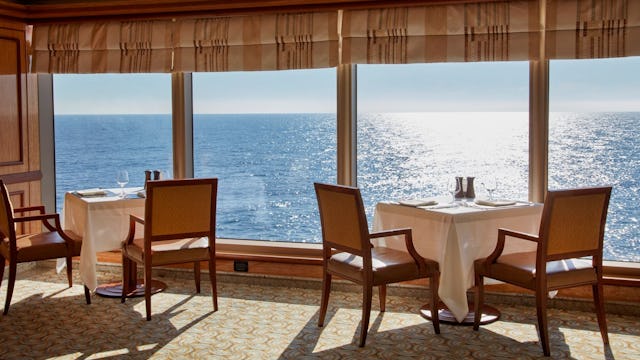 If you’re looking to dine out somewhere extra special on board, this is just the place. The menu features USDA Prime-certified cuts and fresh seafood.