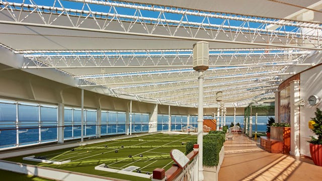 Queen Elizabeth has a refined games deck where you can enjoy games such as bowls, deck tennis and croquet with some friends or join a competition. There is also golf nets where you can practice your swing out at sea.