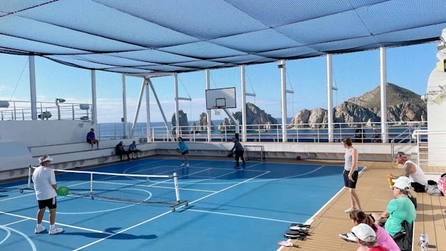 You can try your luck at the casino, relax at the spa or visit the pickleball court onboard Konningsdam.