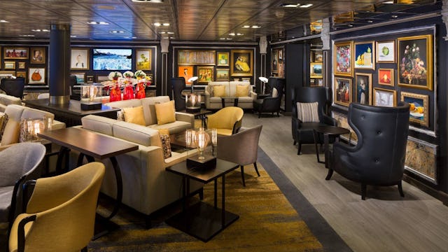 A sophisticated bar decorated with a range of artwork including portraits and abstract pieces. Be sure to try a signature cocktail from a menu created in partnership with a Master Mixologist, Dale DeGroff.