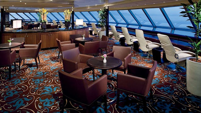 A lounge located at the top of the ship where you can relax and take in amazing panoramic views whilst you enjoy your favourite drink.