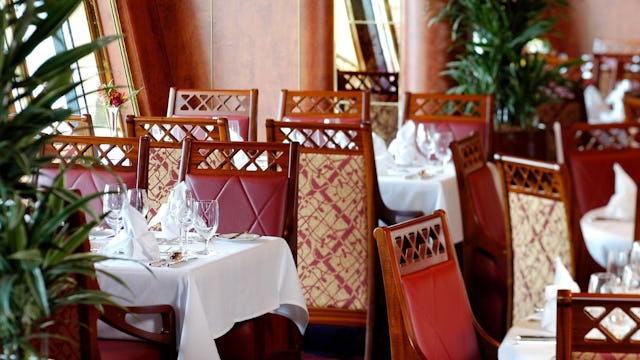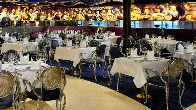 There are many dining options onboard Oosterdam including a multi-course dinner at The Dining Room with a menu created by seven world-renowned chefs. You can also enjoy a cocktail in a relaxed environment at Explorers Lounge.