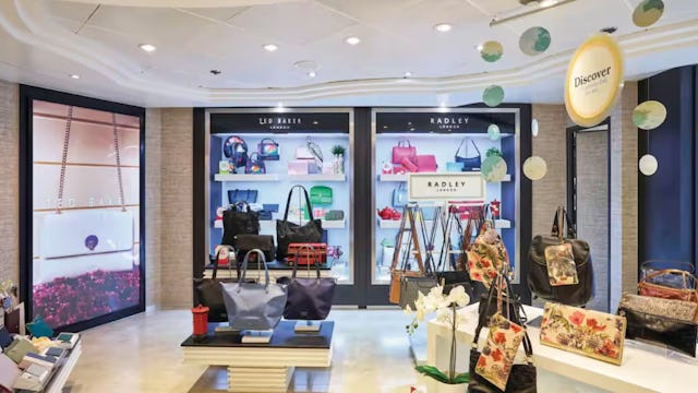 When the ship is at sea, the onboard shops offer a range of top-brand products, from designer jewellery to fashionable perfume, all at prices lower than those on the high street.
