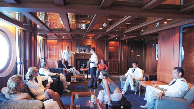 An old fashioned bar onboard where you are permitted to smoke making it a great place for those who partake in smoking to chill out and enjoy a drink including some excellent spirits.