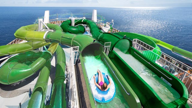 Unwind out at sea and have lots of fun in this waterpark with twisting slides, a range of pools and plenty of activities for people of all ages to enjoy.