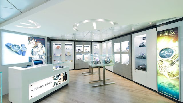 There is a wide range of shops onboard including jewellery and accessories with brands such as Tommy Hilfiger and Armani. There is also a duty-free store where you can find a great selection of products.