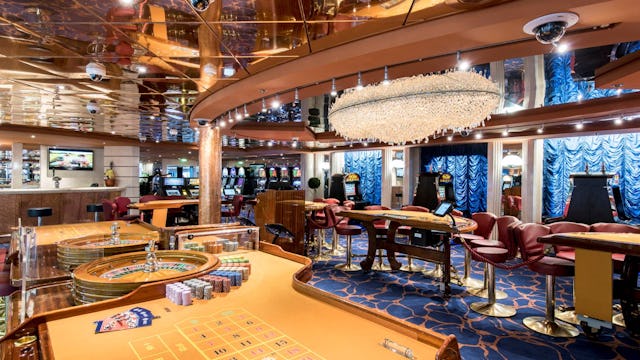 Try your hand at a range of games including a room dedicated to poker, blackjack or roulette in this elegant casino. There is also a variety of slot machines to enjoy.