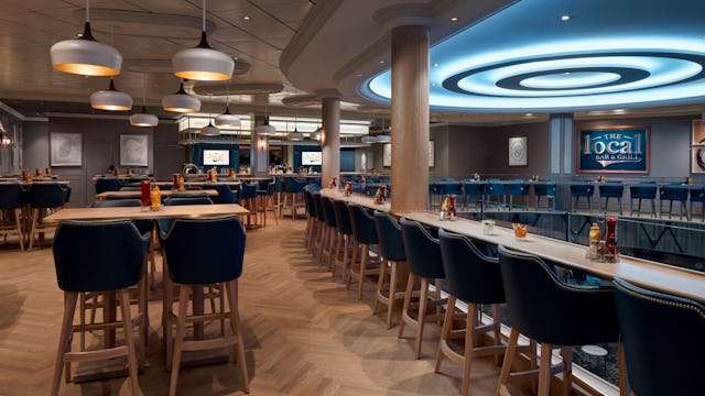 A sophisticated bar at the centre of it all where you can enjoy a signature cocktail and meet other cruisers.