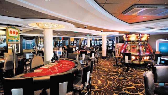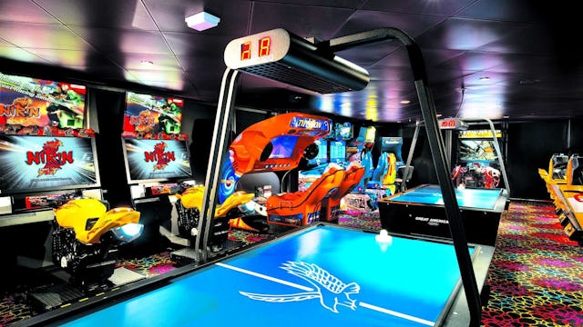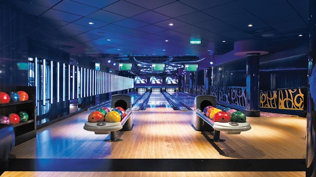 Visit the onboard bowling alley for some competitive fun with your friends and family. Enjoy some snacks and a refreshing drink from the bar as you play.