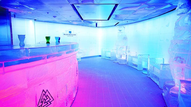 A unique bar where the bar seats and glasses are made from ice with the bar being kept at -8.33 degrees Celsius and features speciality drinks.