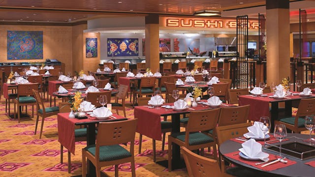 Have a unique culinary experience onboard and enjoy an impressive salad bar and slow-roasted meats which are carved tableside at this Brazilian steakhouse.