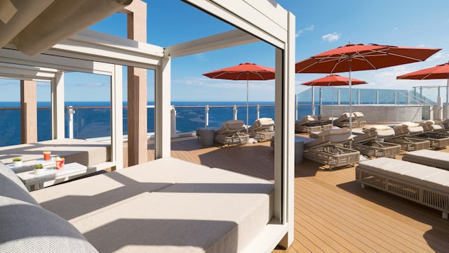 Relax with a drink at the aft of the ship. This open-air bar offers stunning wake views and refreshing beverages, making it the ultimate sunset spot.