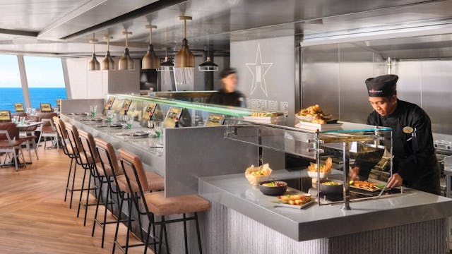 Get front-row seats at a lively table where the expert chefs prepare shrimp, steak and fried rice on a large steel grill.