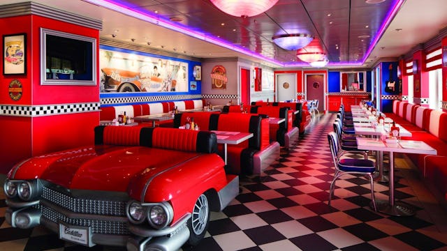 A 24 hour American styled diner where you can find a selection of comfort foods including burgers and chicken wings that are great when paired with a milkshake.