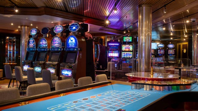 Try your luck in this casino fitted with rich fabrics and purple leather chairs which give it a glamorous feel. There is a roulette table, two blackjack tables and three card poker tables, as well as over 40 slot machines.