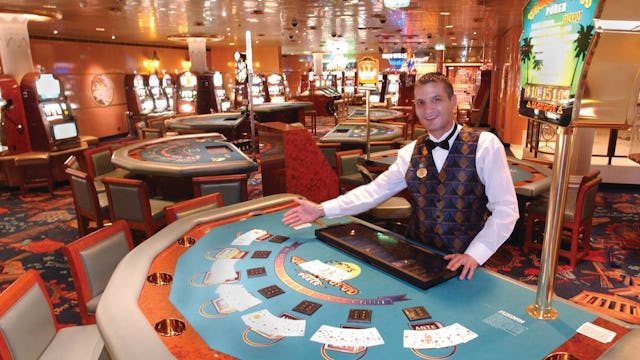 Enjoy a range of your favourite games at this onboard casino including slot machines blackjack and Texas Hold 'Em. There are also gaming lessons so novices can learn how to play and have fun.