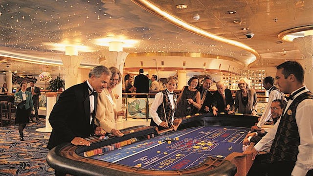 Enjoy a range of your favourite games at this onboard casino including slot machines blackjack and Texas Hold 'Em. There are also gaming lessons so novices can learn how to play and have fun.