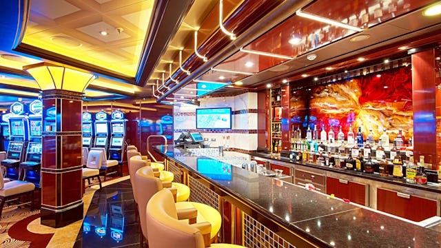 Enjoy a range of your favourite games at this onboard casino including slot machines blackjack and Texas Hold 'Em. There are also gaming lessons so novices can learn how to play and have fun.