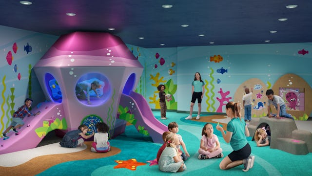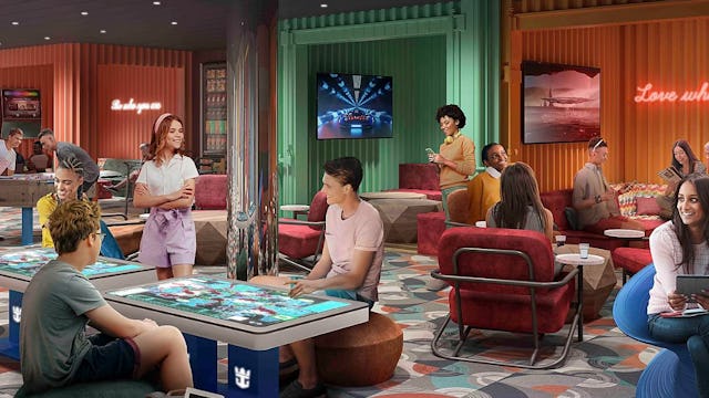 This exclusive space is designed for teenagers to chill out and tailor their onboard experience to their liking. With a diverse selection of movies, music, and games, teens can bond with new friends of their age while enjoying their favorite activities.