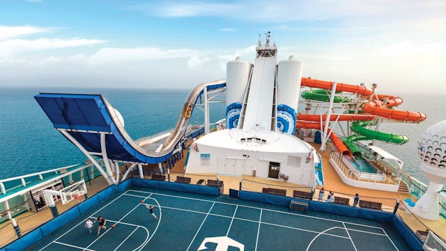 This is the first boomerang-style water slide at sea. Experience the sensation of weightlessness as you ascend the slide and then rebound down the other side.