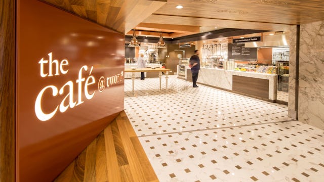 A bar with floor-to-ceiling windows provides a fantastic view as you sip on your hand-crafted cocktails. At night, it transforms into a nightclub to keep the party going.