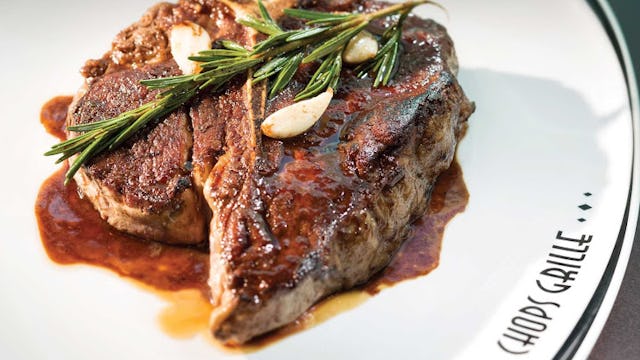 Indulge in a variety of hand-cut steaks, along with Maine lobster, grilled branzino, and other delectable dishes.