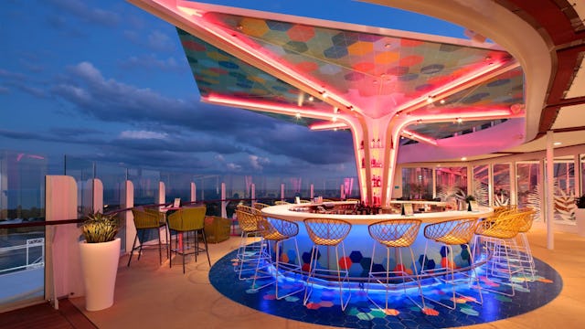 Enjoy panoramic views as you sip on your favorite cocktails during the day, and revel as the bar transforms with a kaleidoscope of colors at night.