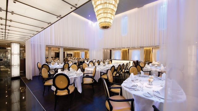 Enjoy your morning coffee in this lounge with floor-to-ceiling windows which allows panoramic ocean views. During the evening it is a great place to meet your friends and other cruisers and have a cocktail together with live piano music playing in the background.