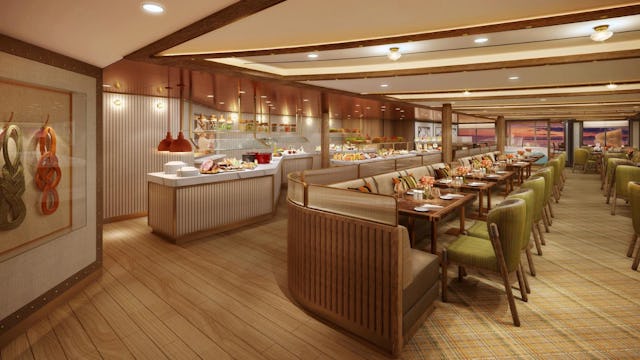 A more casual dining experience with indoor/outdoor seating and featuring an open kitchen. Here you can have buffet-style food or table service with regionally themed dinners every night.