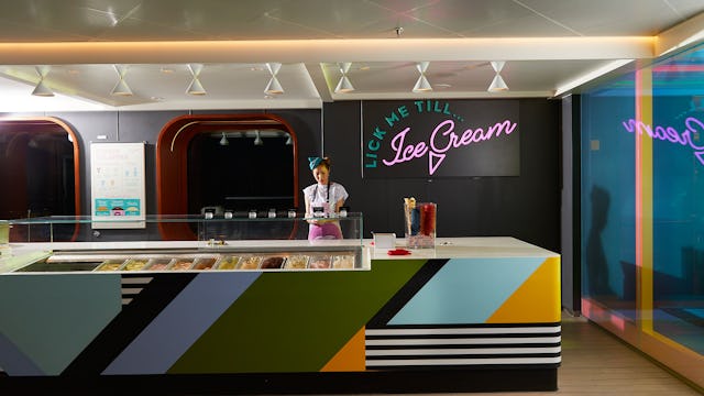 A retro-style counter dishing out free scoops of fun flavours all day. From classic vanilla to more adventurous picks, it’s a must for sweet-toothed sailors.