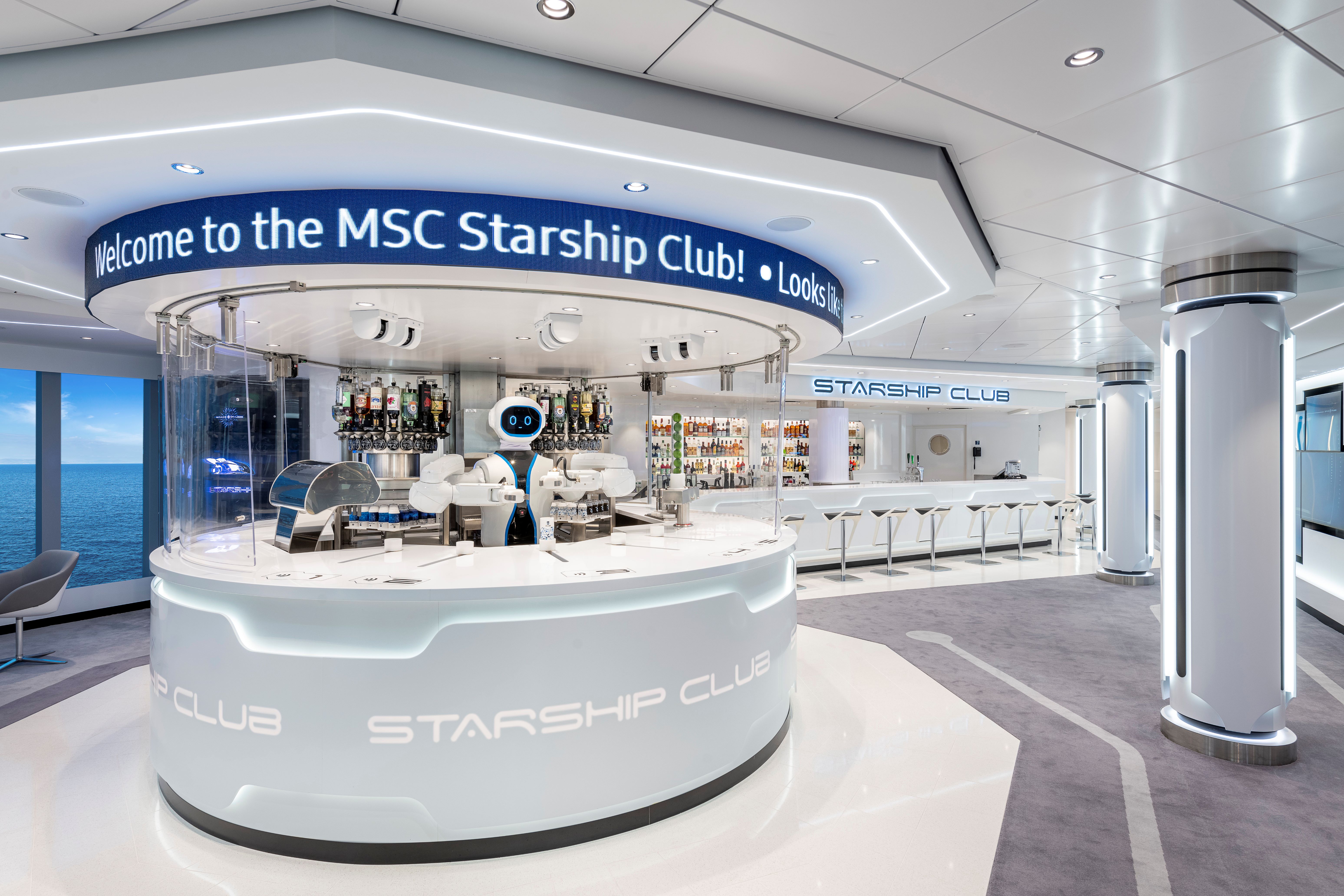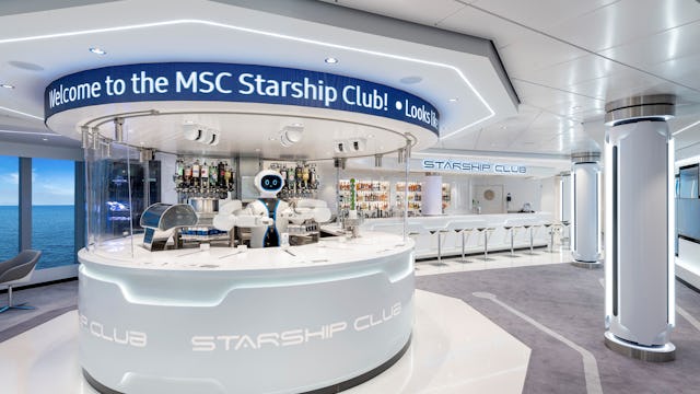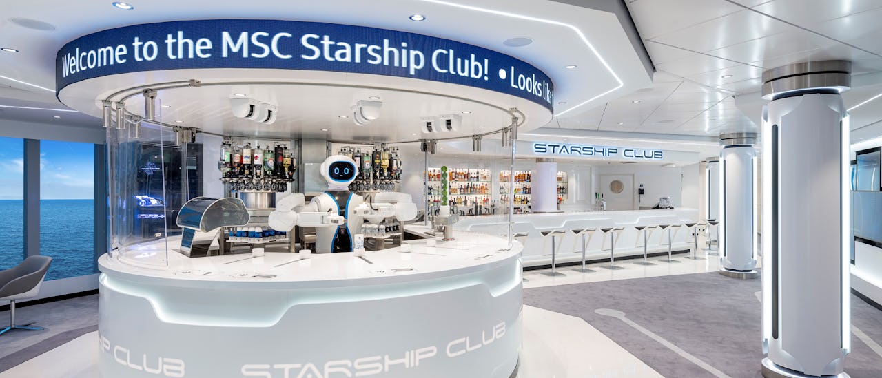 Enjoy a unique at-sea experience with a visit to the MSC Starship Club. Order your cocktail on the touch-screen and then watch in awe as Rob, the first robotic humanoid bartender at sea, whips up your drink in front of your eyes.